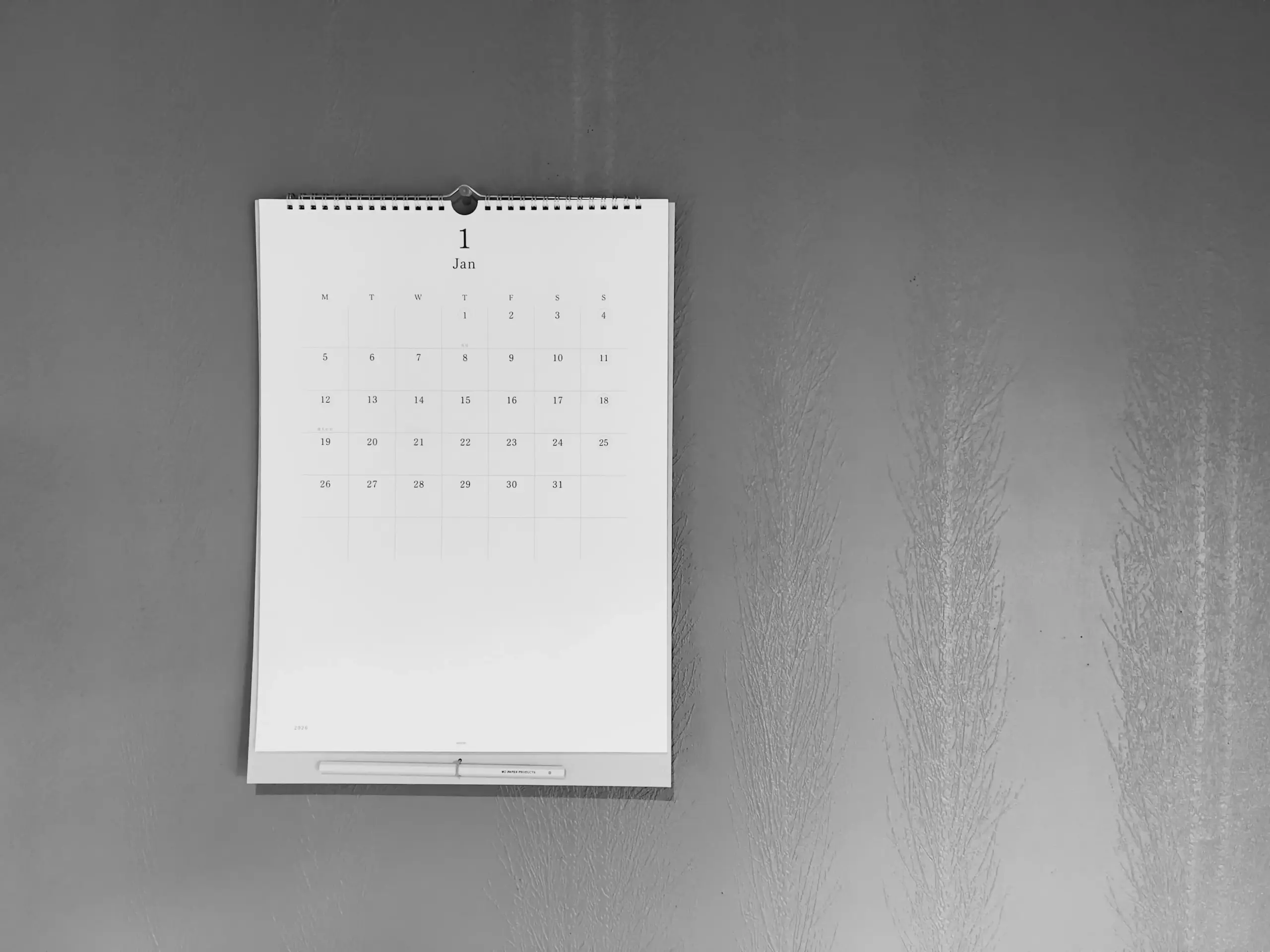 朝一番に壁にかけたカレンダー。念のため1月から12月までのマスの数を数えてみたけど、やはり365マスちょうど。まもなく終わる今日のこの一つのマスは、永遠に戻らないと考えると、一日の大切さが沁みてくる。