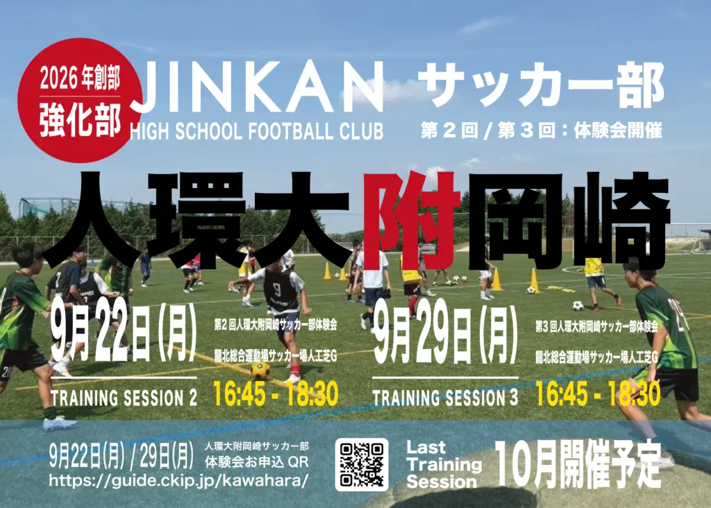 *2026年に創部するサッカー部は、人環大附岡崎高校の強化部に指定されました。