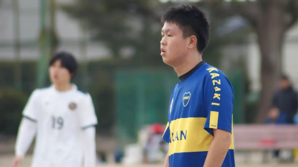 ジンをJでカンをKで表しました。そしてこの二つを合わせたJKの文字に、高校のHigh schoolの頭文字のHと、Foot ball(英:サッカー)の頭文字のFを組み合わせて「JKHF」のロゴができました。